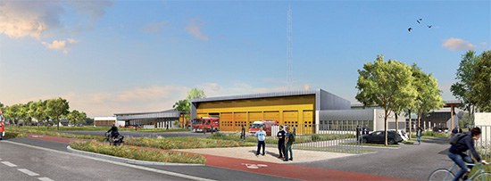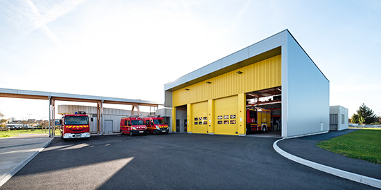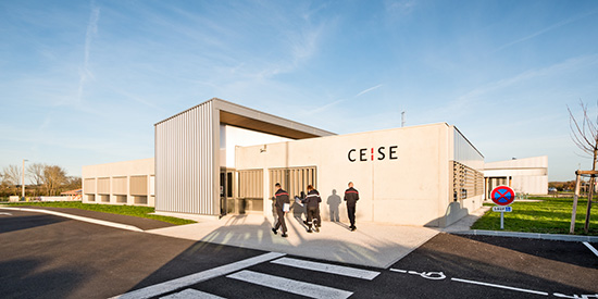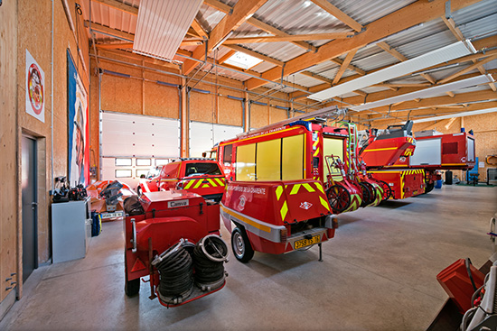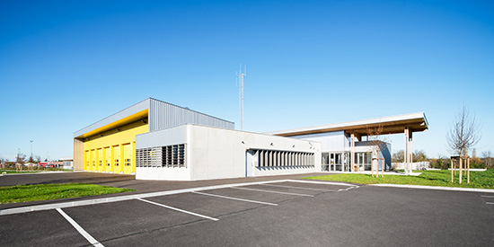 construction du centre de secours de Jarnac et de l'Ecole départementale du feu, avec plateaux de feux d'alcools