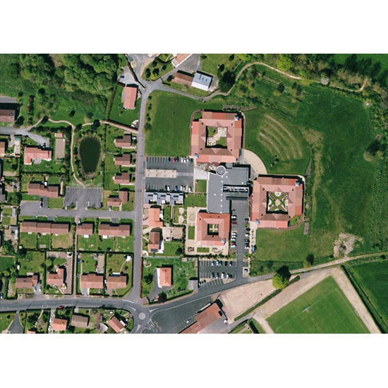 Entièrement en rez-de-chaussée, les bâtiments dʼhébergement sont subdivisés en enfilade de “maisons” tournées autour de jardins clos, à lʼéchelle de lʼhabitat pavillonnaire alentour.