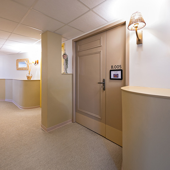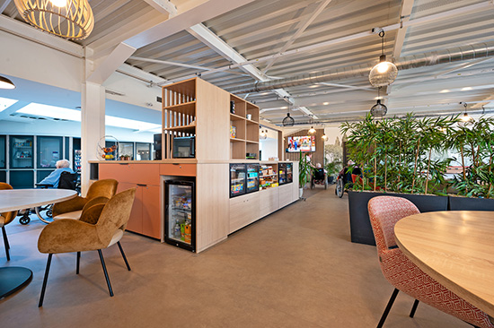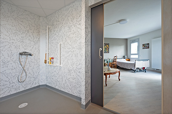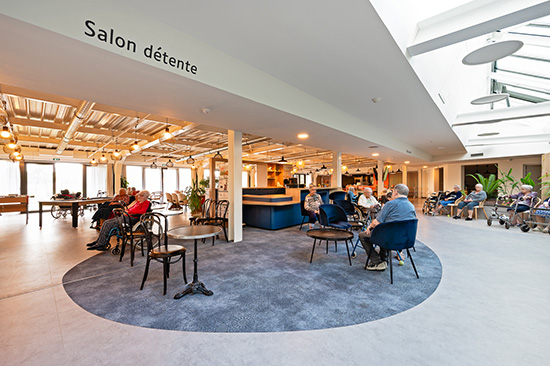Le projet renforce cette ambiance résidentielle, avec un socle commun démultiplié: les grandes salles de restauration et d'animation forment un tout continu avec un hall généreux réunissant les deux ailes, avec de larges ouvertures sur le parc.