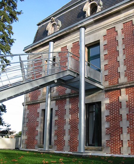 En deux tranches, des extensions ont été créées sous la forme d’un socle prolongeant le demi sous-sol du bâtiment :