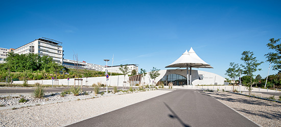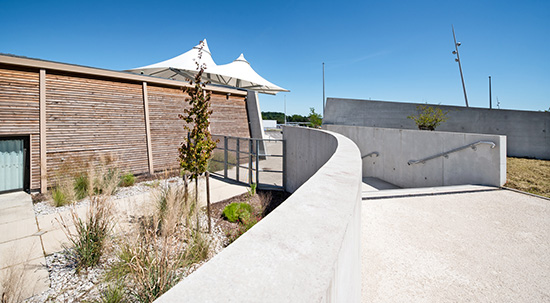 Nous avons préféré l'idée d'un bâtiment-paysage, jouant sur les ondulations du relief à la manière d'un ouvrage de génie civil. Ses parois seront donc des falaises creusées formant soutènement de toits végétaux, rappelant les reliefs naturels et artificiels d'Angoulême (remparts, carrières, …).