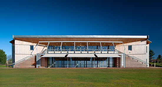 En contrepoint avec la convivialité intérieure du cercle central, l’ouverture sur le paysage est maximale, accompagné par un traitement végétal affirmant la trame bocagère.