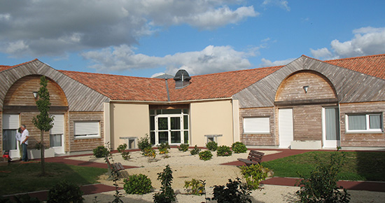 Entièrement en rez-de-chaussée, les bâtiments dʼhébergement sont subdivisés en enfilade de “maisons” tournées autour de jardins clos, à lʼéchelle de lʼhabitat pavillonnaire alentour.