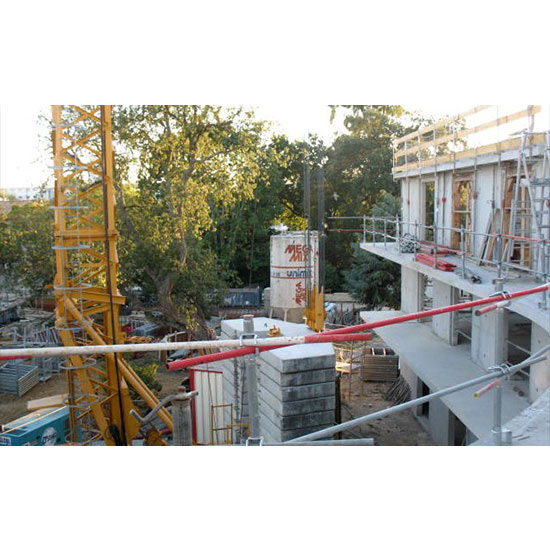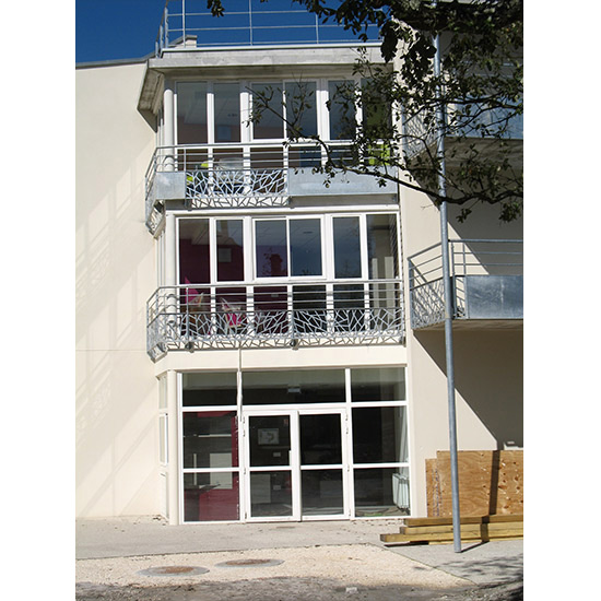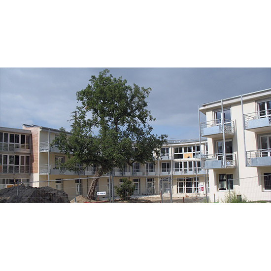 Dans le beau parc du “Château-Gardères”, le nouveau bâtiment formera une rotonde en creux perpendiculaire à lʼaxe du bâtiment historique. Le bâtiment étant conçu en R+2, les résidents bénéficieront de cheminements courts vers le noyau vertical central. Celui-ci débouchera dans un rez-de-chaussée très ouvert sur les jardins, en double face.
