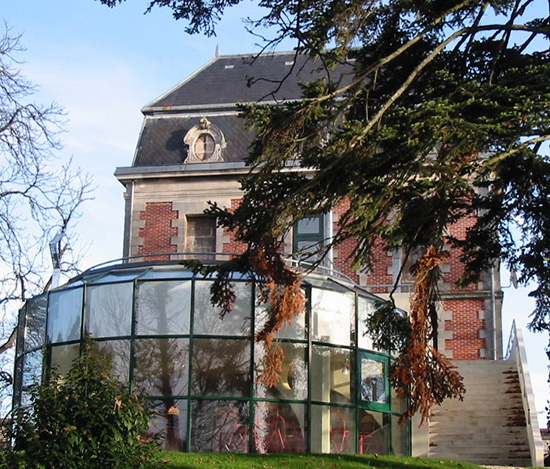 en proue, la salle à manger avec sa rotonde vitrée domine le parc