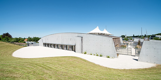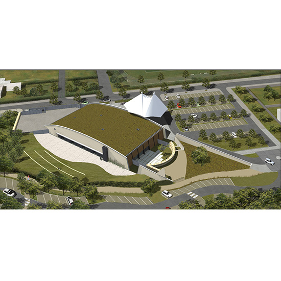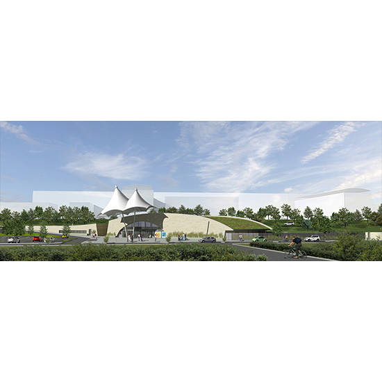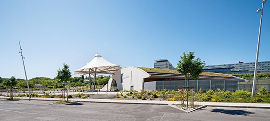 Nous avons préféré l'idée d'un bâtiment-paysage, jouant sur les ondulations du relief à la manière d'un ouvrage de génie civil. Ses parois seront donc des falaises creusées formant soutènement de toits végétaux, rappelant les reliefs naturels et artificiels d'Angoulême (remparts, carrières, …).